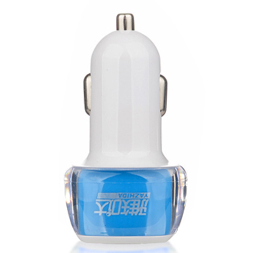 型号:YZD-01参数:1. 输入:12-24V2. 输出 USB1:5V-2.1A USB2:5V-1.0A3. 内置进口稳压芯片, 超强保护功能, 可有效 防止短路4. 双边弹簧设计, 防止插头从点烟口中脱落5. 充电过程中不影响电话的接入和拨打,确 保信息畅通无阻6. 状态显示, 将本产品接入点烟器, LED灯即 显示为蓝色长亮, 拔出点烟器后LED指示 灯灭7. 亚克力外壳